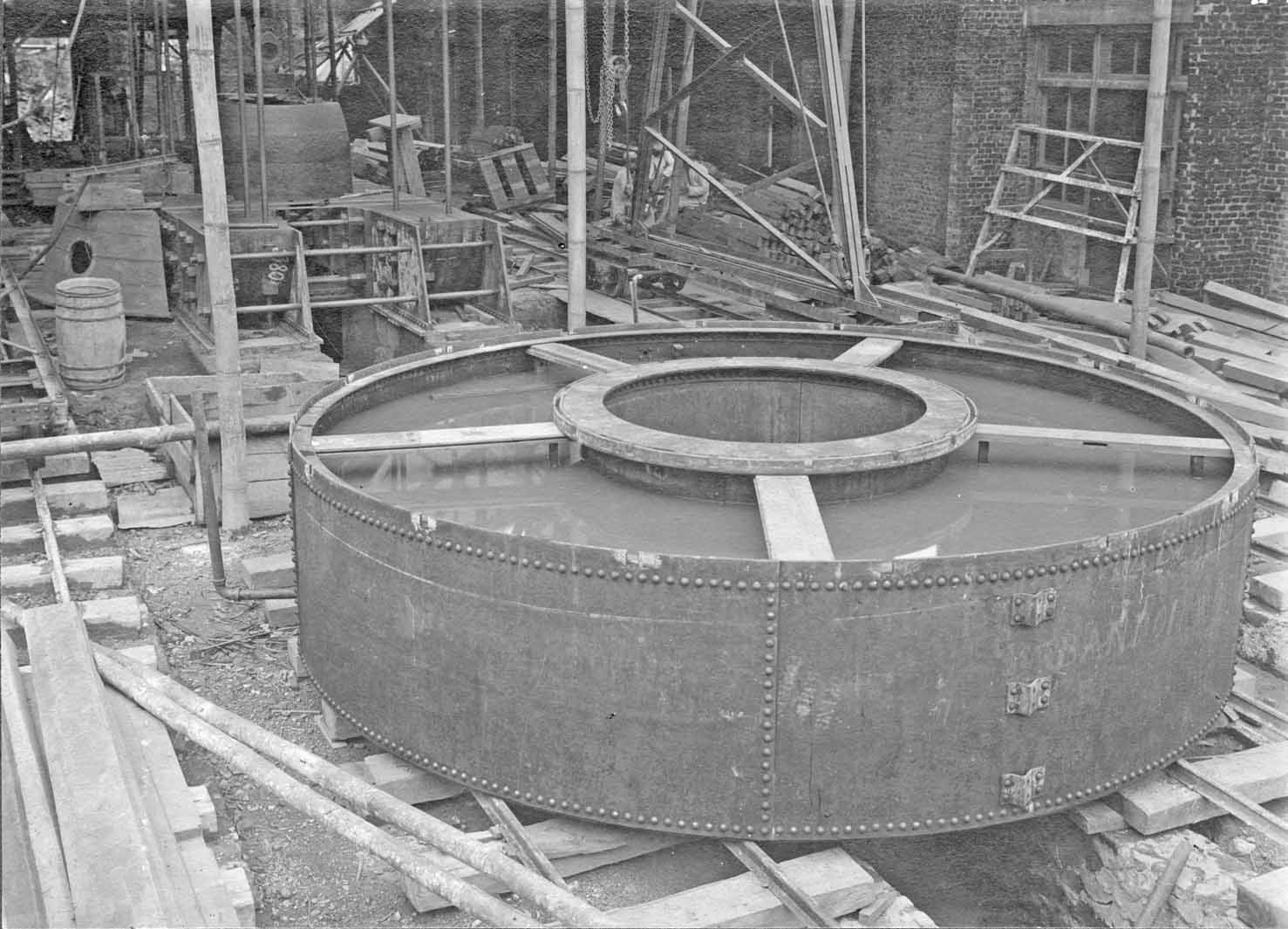 Have they started building the Telefunken transmitter space? This attached hall was later integrated into the Radio Malabar complex. It was against Dr. de Groot's whish, but the Dutch Government forced him to implement the 'Machinezender' in to the Radio Malabar station concept. The Telefunken transmitter was a very good complementary system. It definitely was more reliable than the big Poulsen Spark-Gap apparatus; which demanded much more maintenance and care.