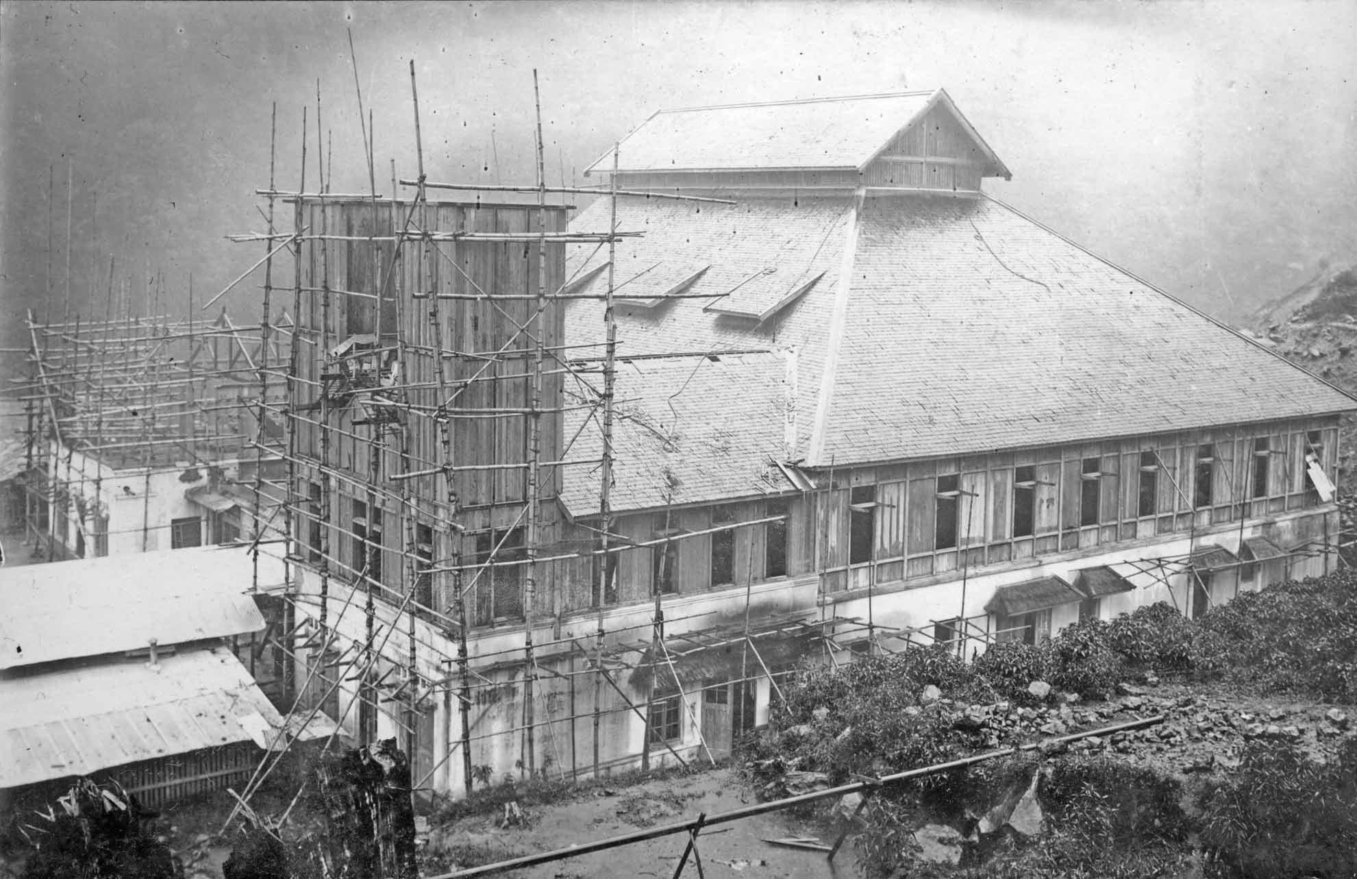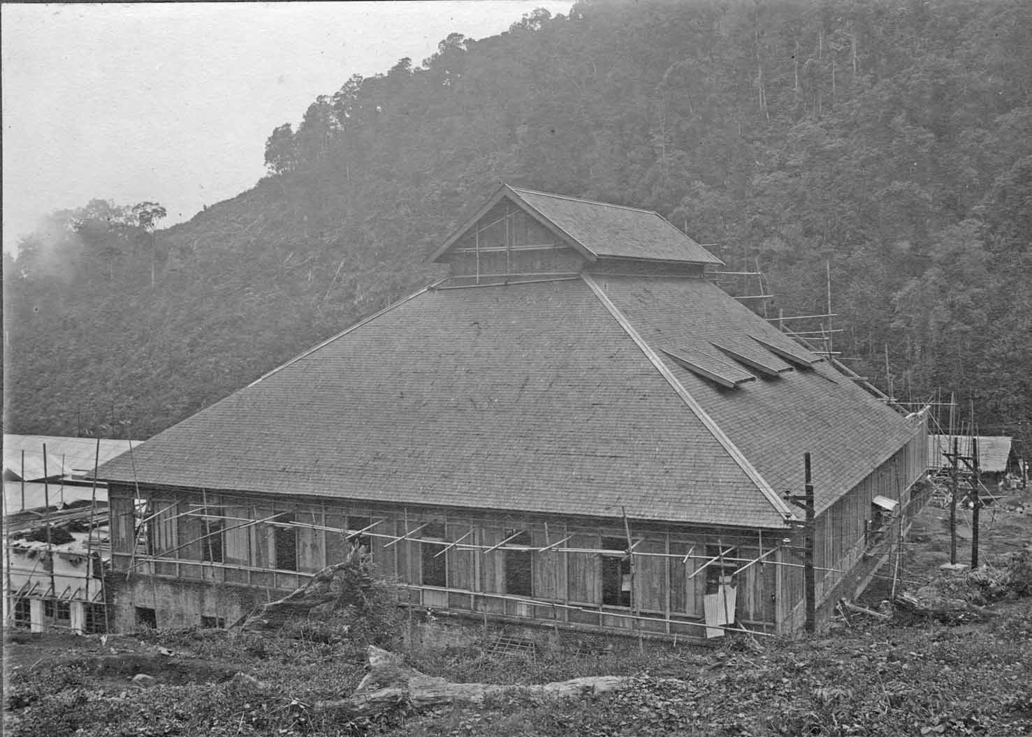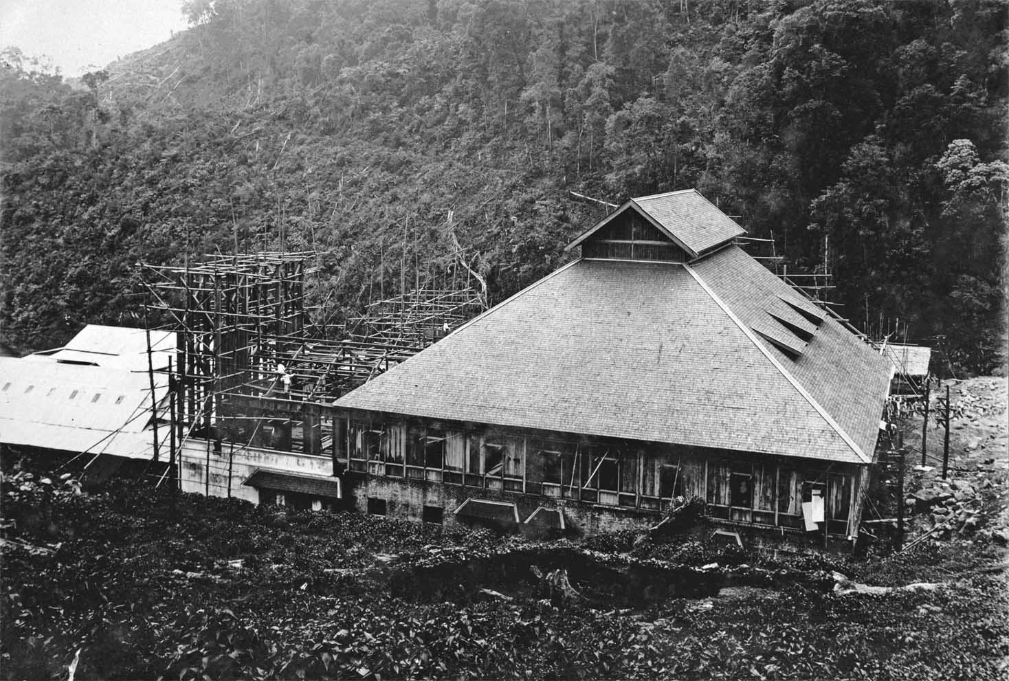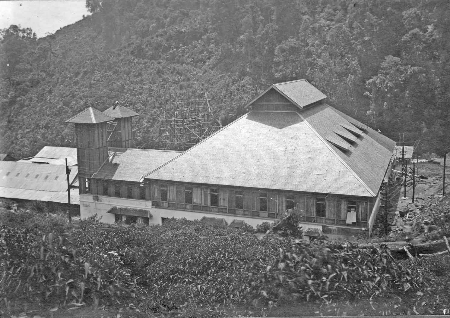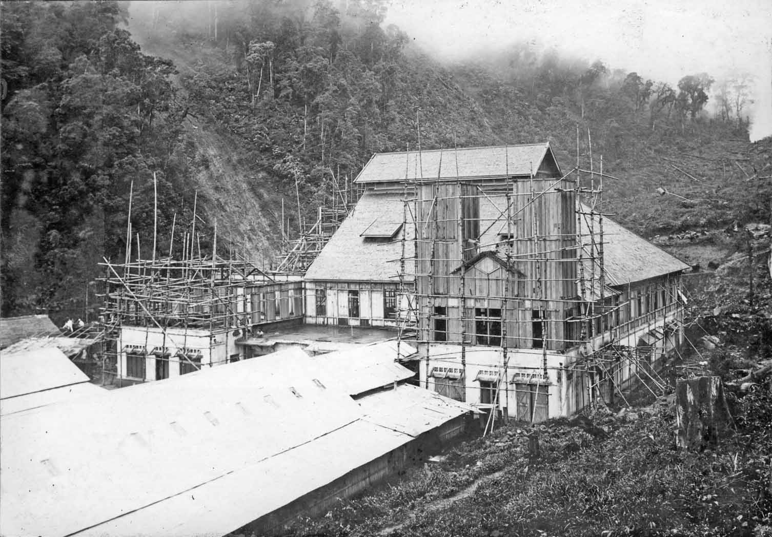 The photographer was standing at the western* side of the building. The rain clouds are sweeping from the Bangung high lands (planes) up the Malabar mountain slope. Please bear in mind, that humidity reached often 100 %. Although, being in a tropical country, during the night at 'Malabar' it could be below 0° C.
