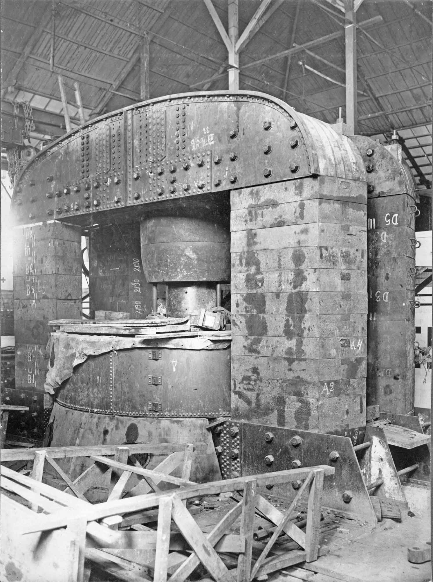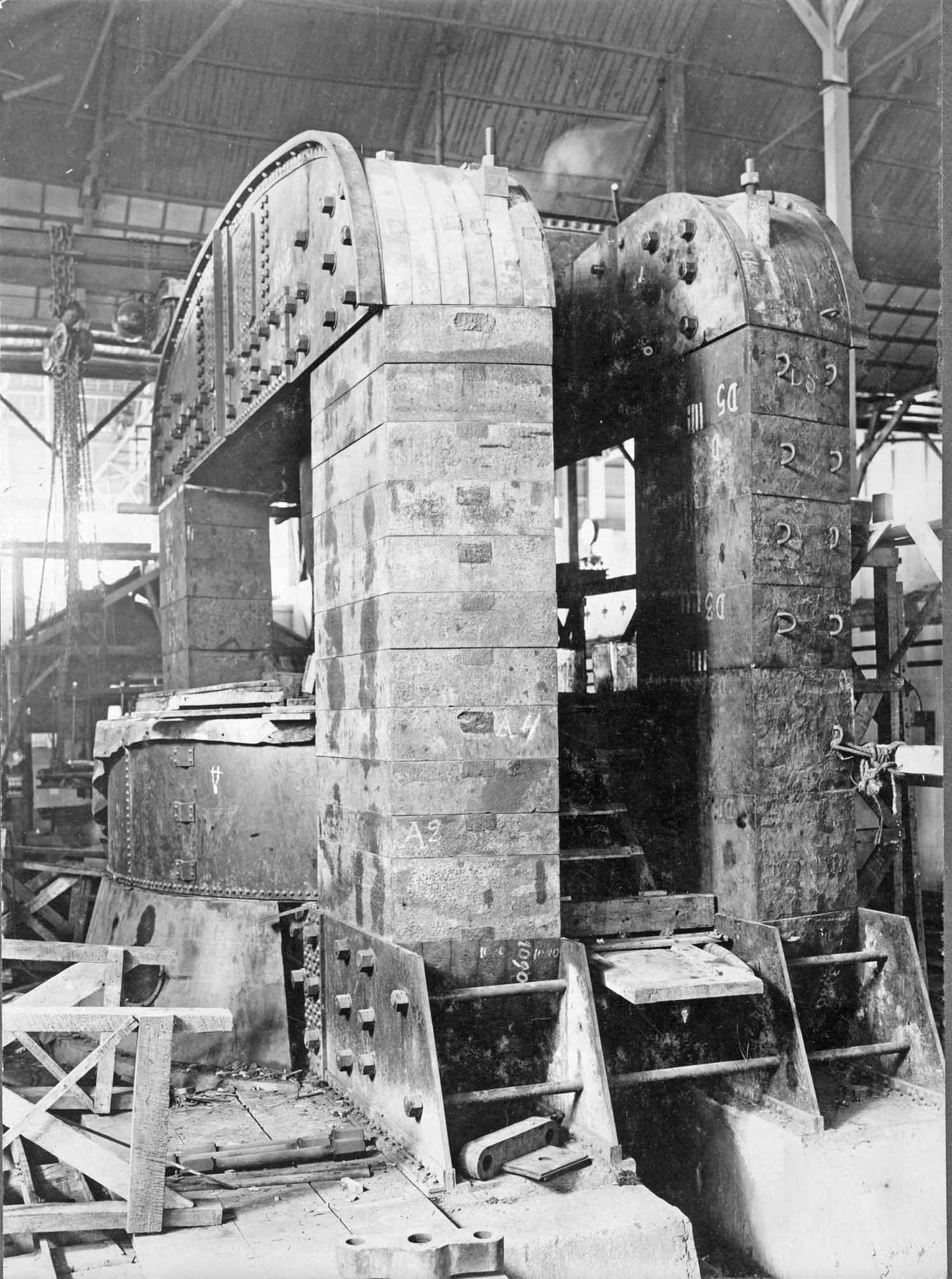 Viewing the construction of the Telefunken section. We likely are looking at the foundation of the Telefunken HF machine-generators. Its dimensions are quite impressive (heavy).
