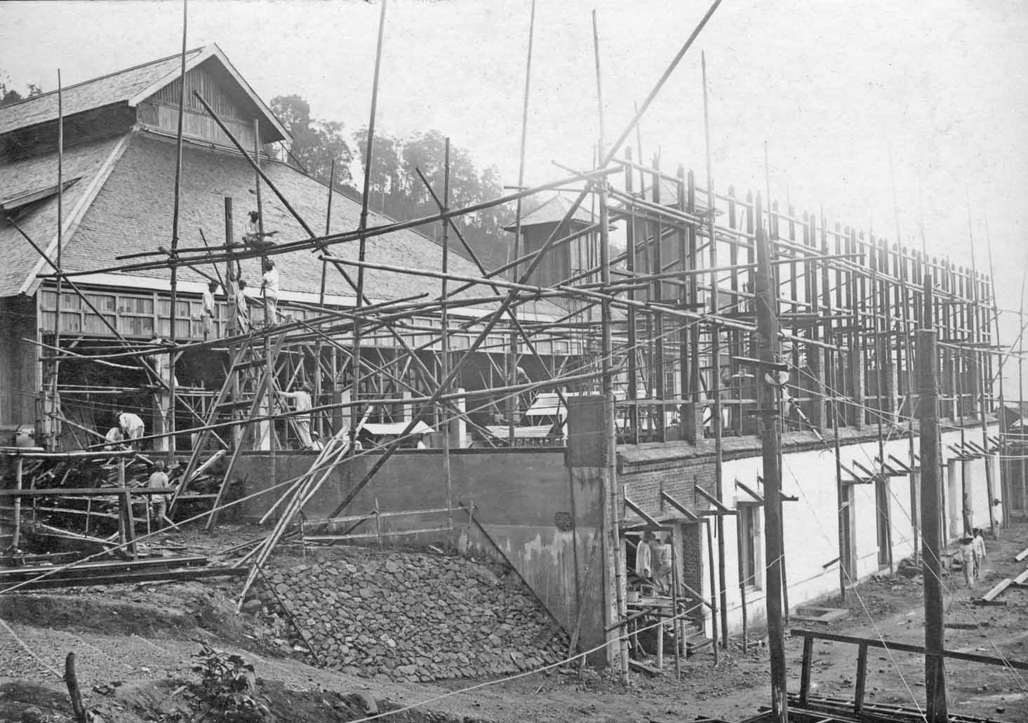 In the background the roof under construction of the attached Telefunken transmitter hall. What the purpose of the building in front was we don't know.