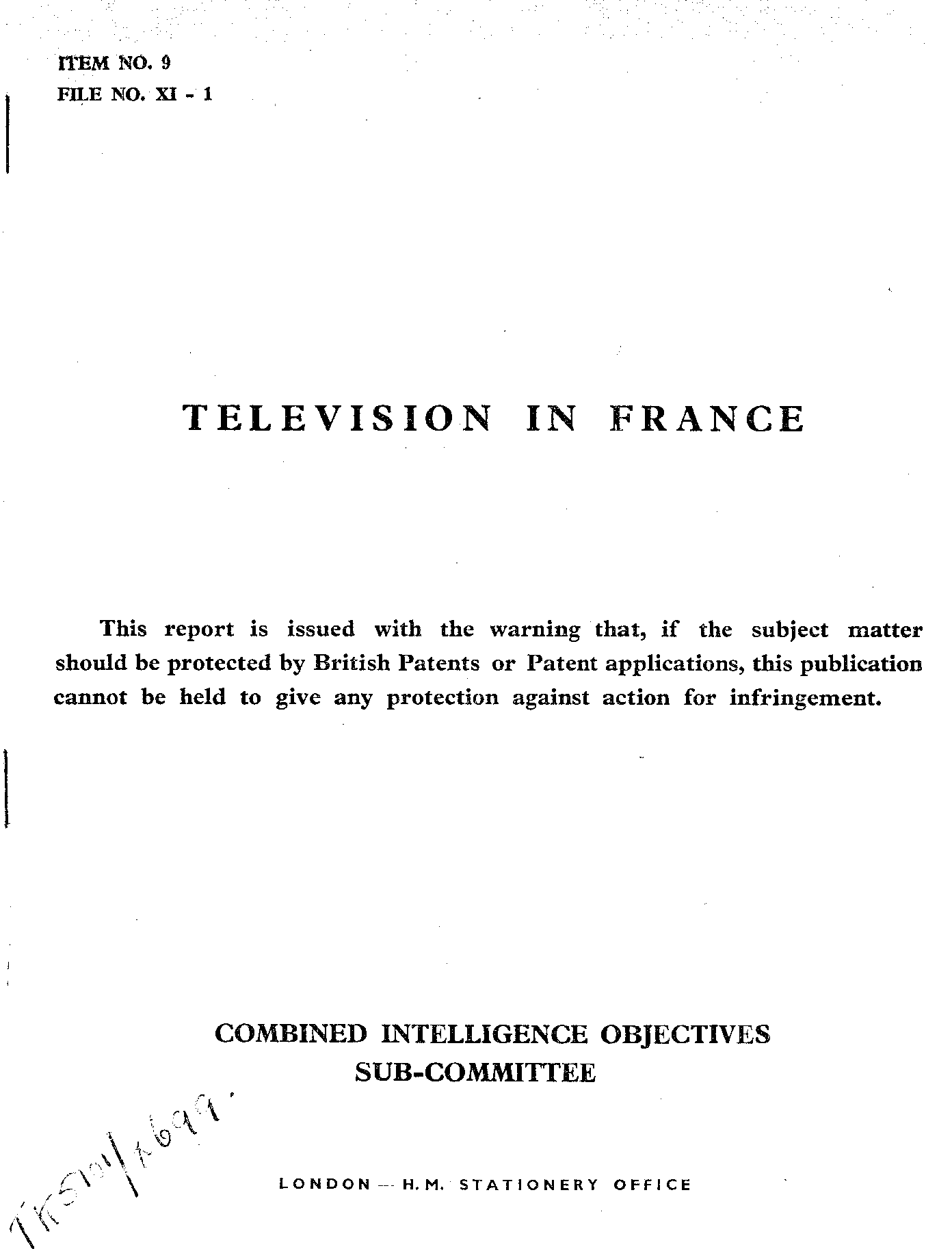 Keywords: During demonstartion, films and a live scene from studio were shown both the 450 and the 1050 line systems .. The improvement in the encrease in entertainment value of the 1050 line picture was most marked ....* ; ... On one model of camrea, the operator surveys the picture through a view finder, while on the other camera, he looks at the picture being transmitted on a cathode ray tube ... ; They have a large television studio which was built to the order of the Germans and has an auditorium which 250 seats ... The control room has facilities for mixing the outputs of up to six camera's and has enormous cathode Ray Tubes for looking at the various pictures ... ; The television camera's were removed by the Germans but they left the film equipment. This consisted of a fairly elaborate cine projector and a pick-up, which consisted of an orthicon, fitted with a photo-cell ...