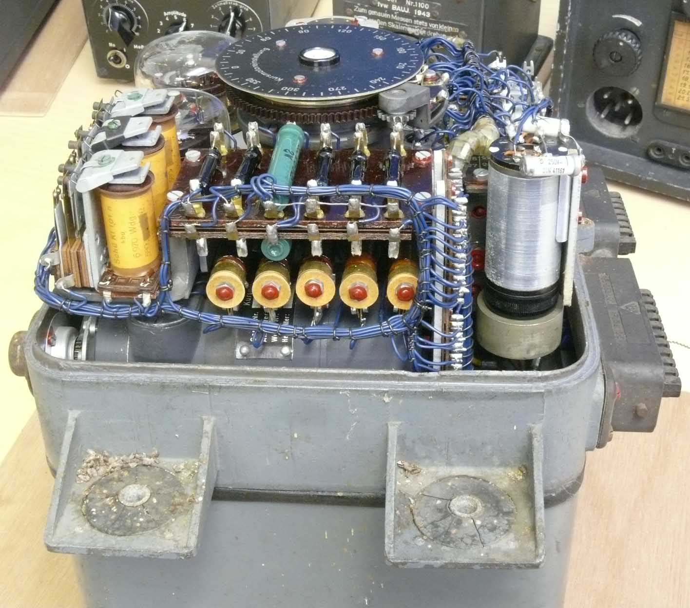 As to ease Werner's investigation, I later did send him this rare set, followed by the very curious vibrator, which functioning caused cumbersome problems. Maybe the design of this latter vibrator is the main reason why this versatile device never reached serial production. The only two apparatus known - carried serial numbers 011 and 015, both once came from England (captured likely in 1945). This might point in to the direction of a so-called 'Null-Serie'; a small series meant for military acceptance tests.