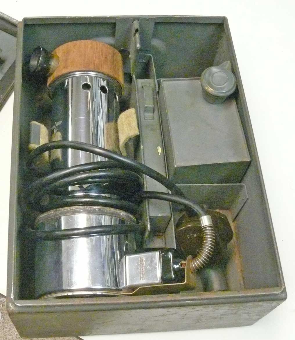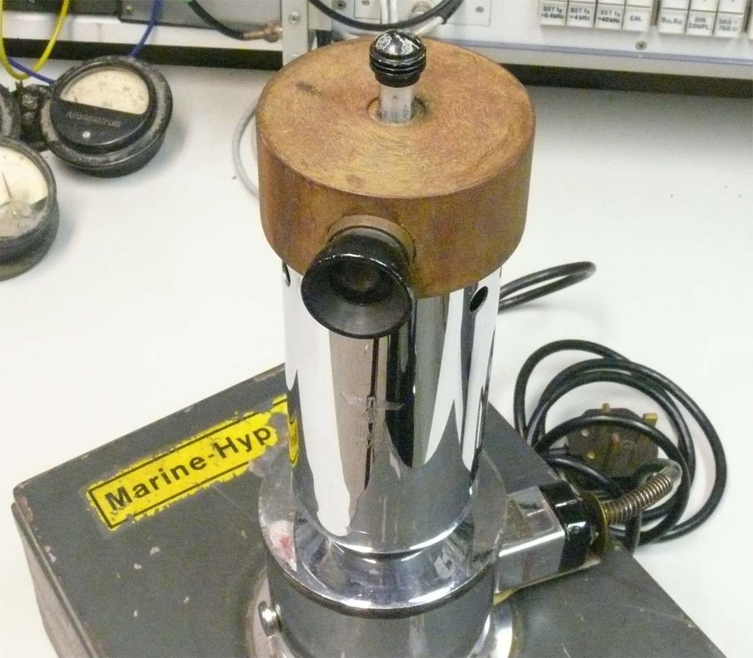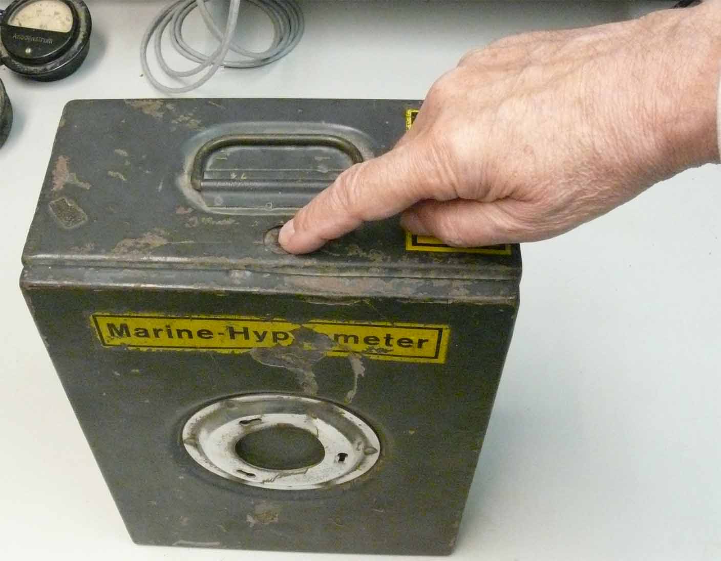 The Naval Hypsometer mounted at the box. On top of it the inserted 'Thermometer' device