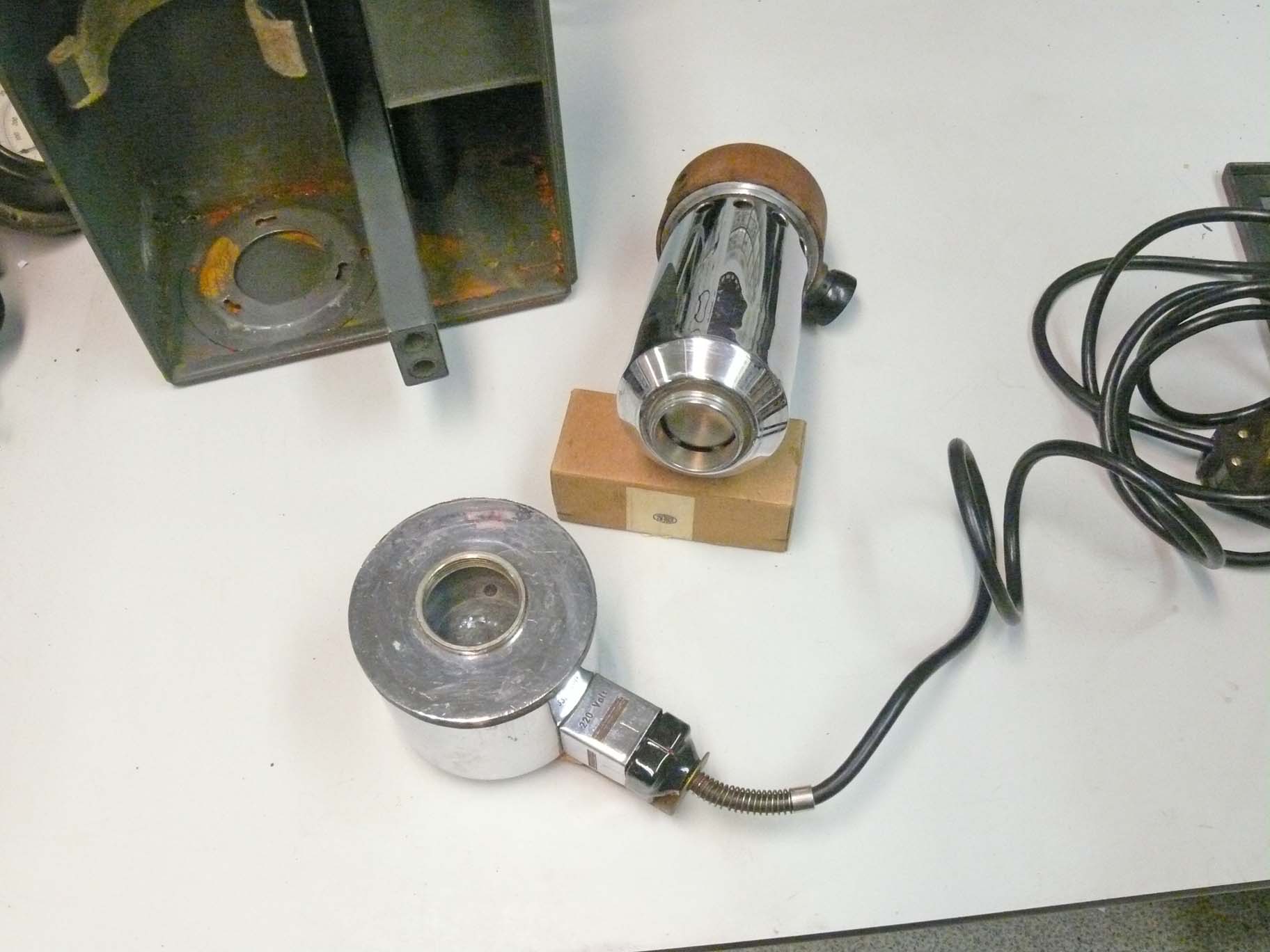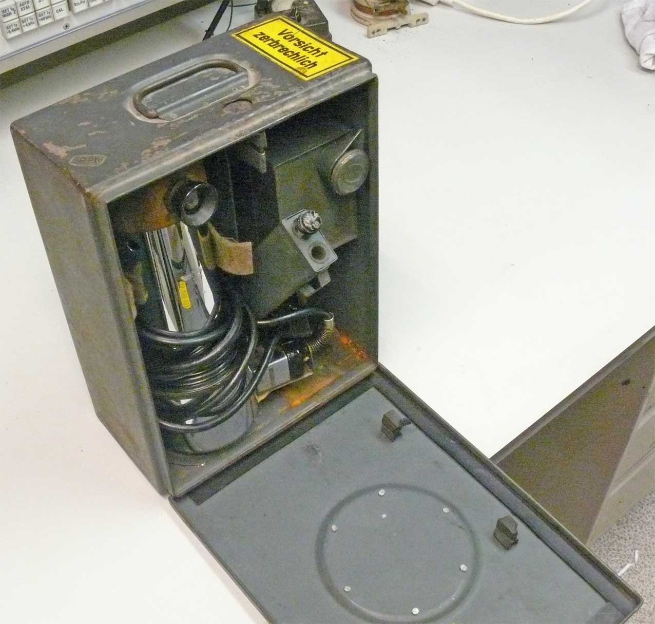 The wooden module pulled a bit out of the box is the holder to the measuring Hg thermometer. (to be explained later)