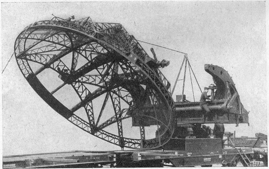 Preparing the Giant Wurzburg antenna-dish to be mounted onto both hinge frames