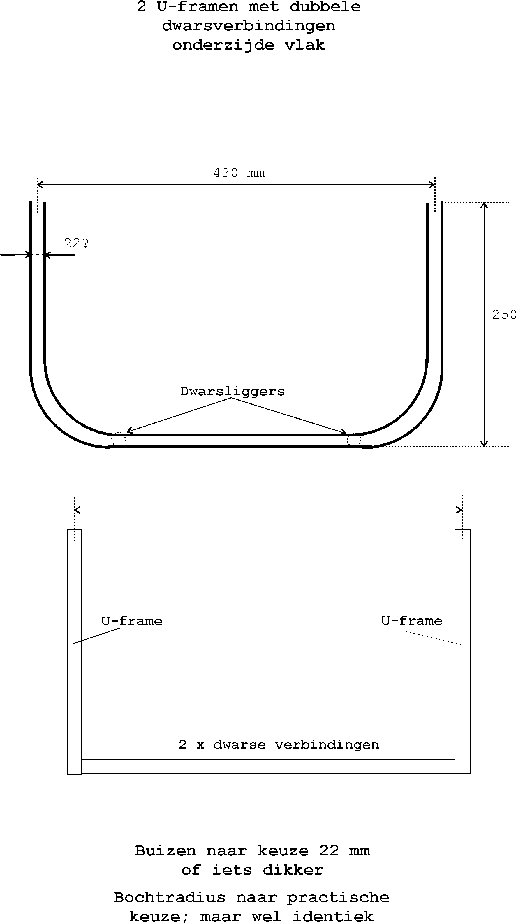 The upper tube ends will be each fit with M6 screw-nuts, as to facilitate direct mounting of the tape deck frame. Spacing between the two U-sections 660 mm