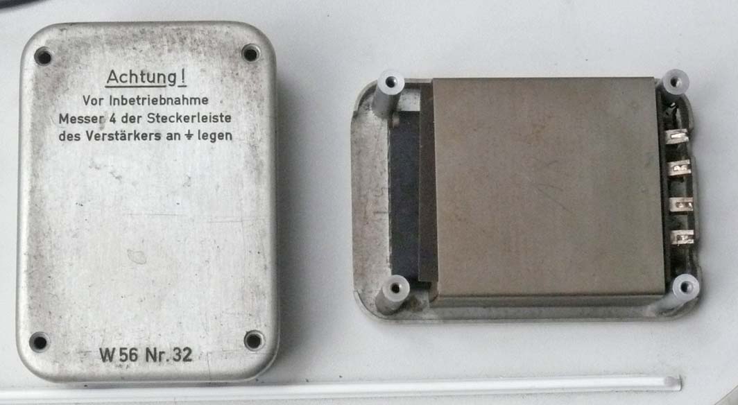 The filters were quite neatly built. On the right-hand side the filter covered by a mu-metal-sheet. On the right hand side the cables have to be soldered, on the left a 8 pin-Tuchel connector is provided