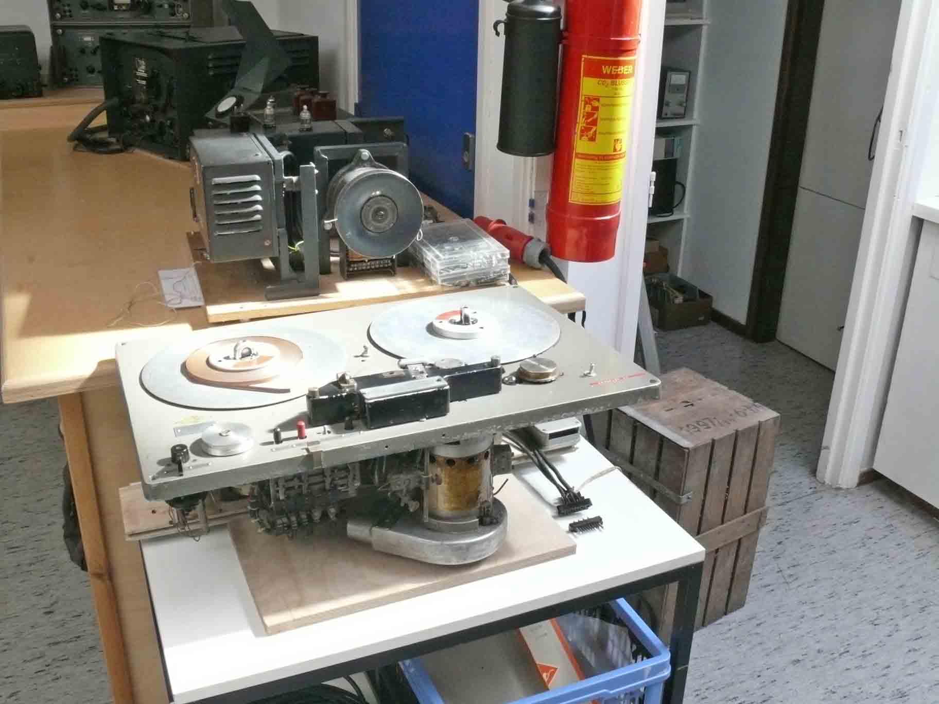 Sadly, just not visible are the control push buttons like the ones in the previous photo. The apparent difference is that the recorder deck is broader than was the wartime K7 machine.