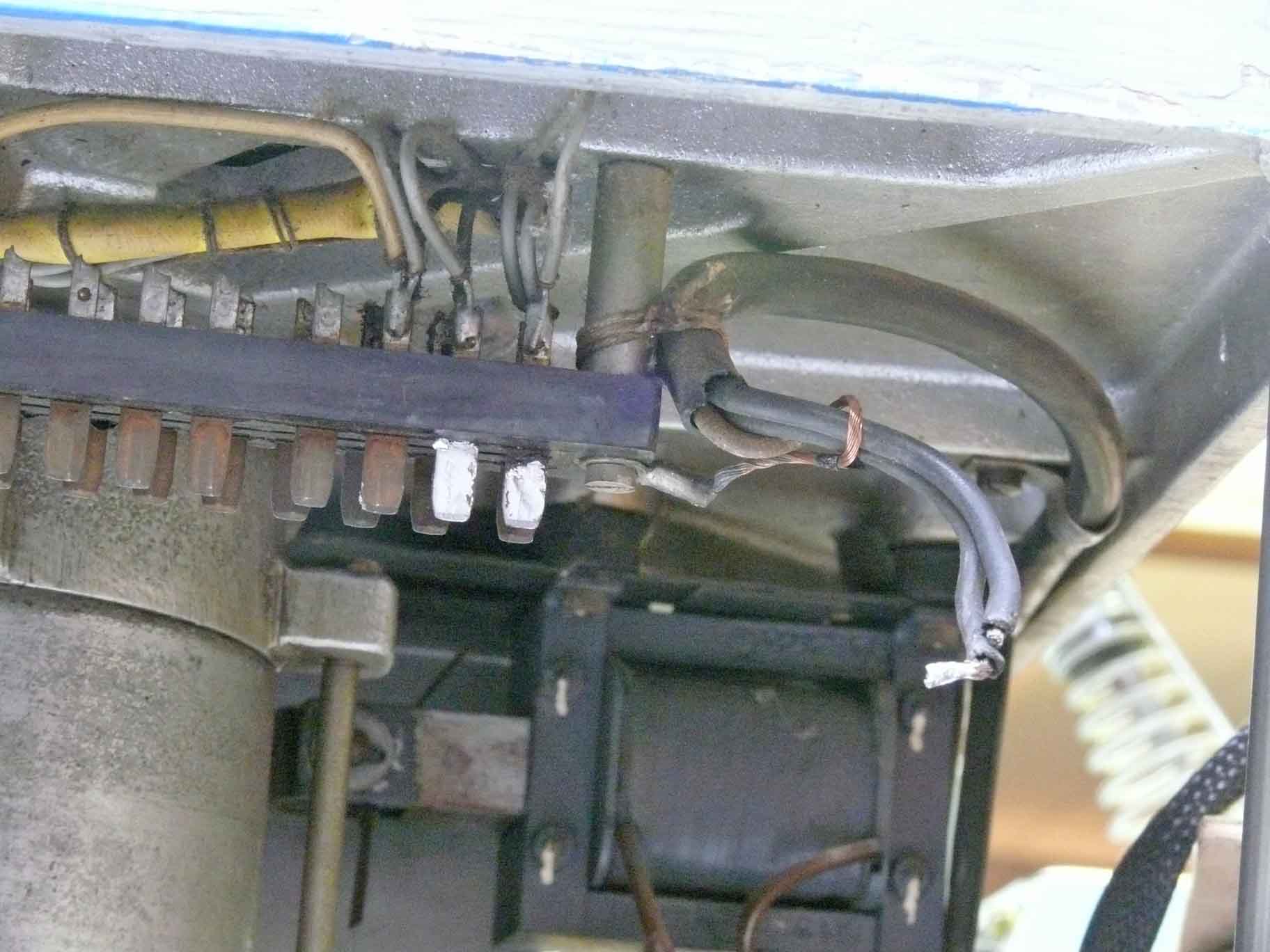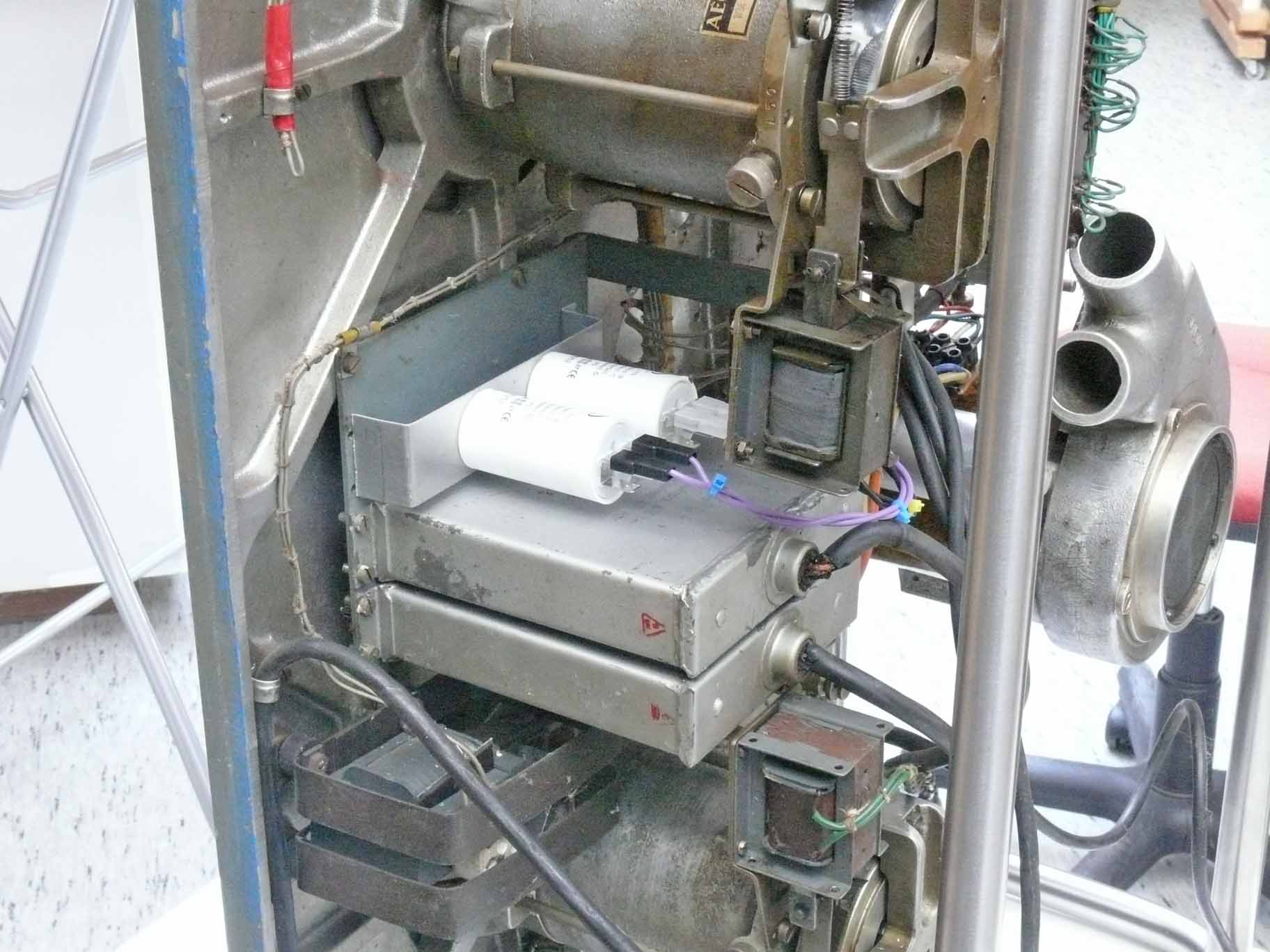 As to maintain the original look the two original motor capacitors being kept in place and the two new samples being mounted where apparently the third once was fit. This one being most likely removed by our Belgium friend who once donated this machine to our Foundation