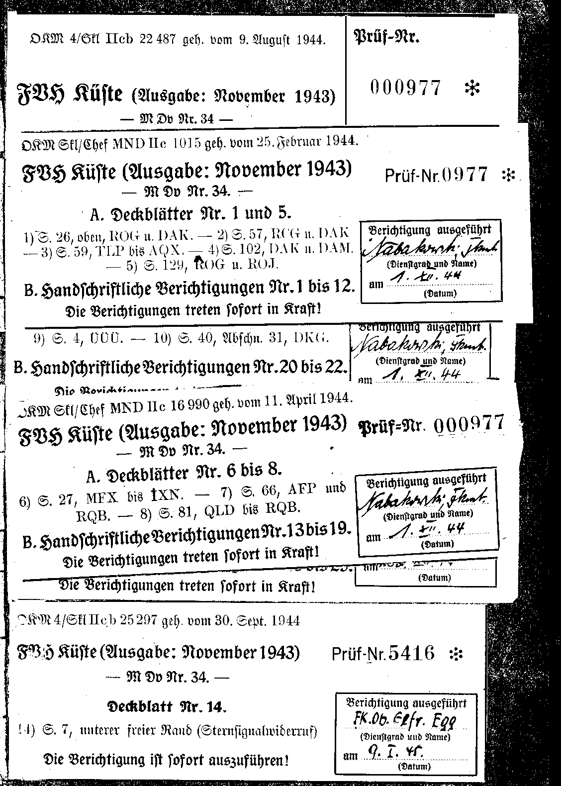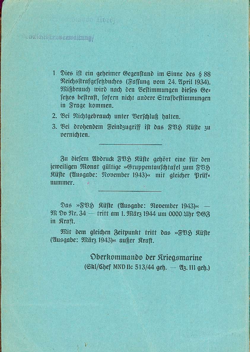 Zu diesem Abdruck FBH Küste gehört eine für den jeweiligen Monat gültige ..Gruppentauschtafel zum FBH Küste (Ausgabe: November 1943)<< mit gleicher Prüf=nummer