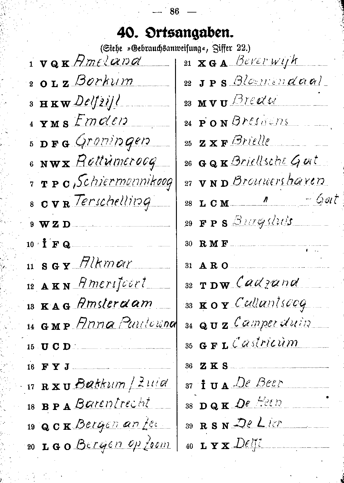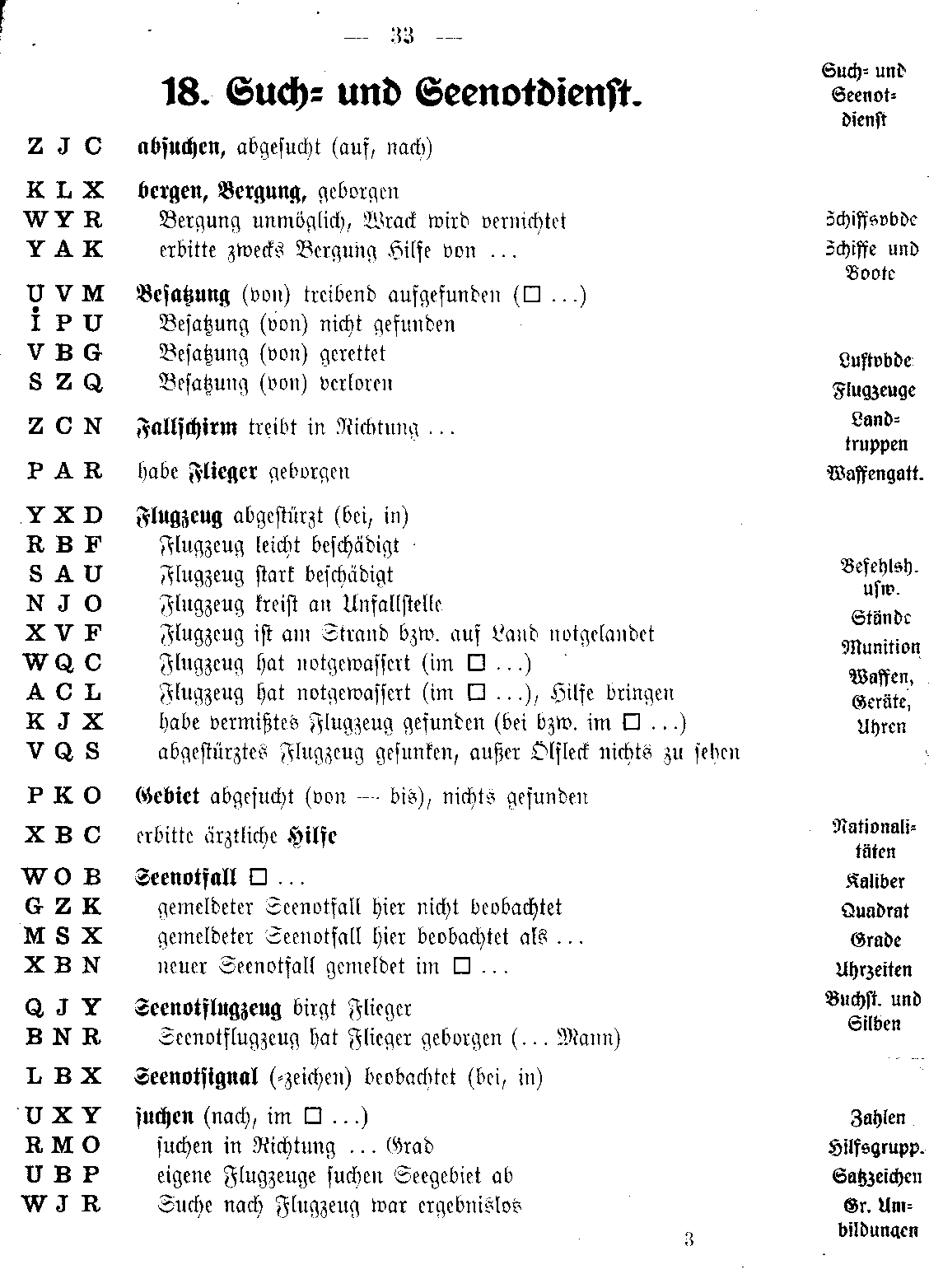 These pages provide the code-groups in use, for example, (quoting from pages 86 pp) for: