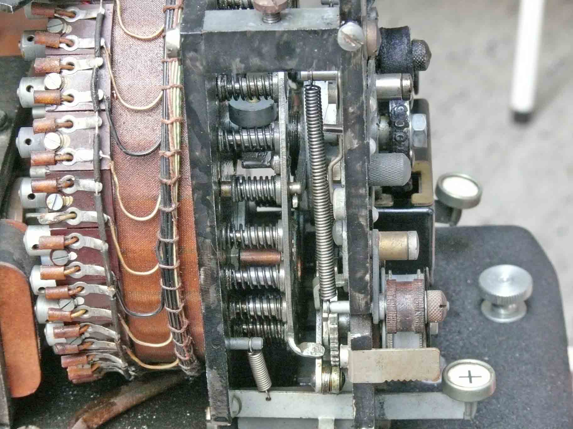 This photo shows the rear side of the Schreibmax apparatus (bearing-plate being removed)