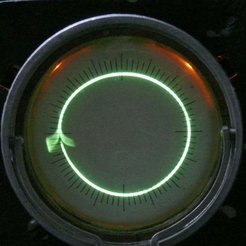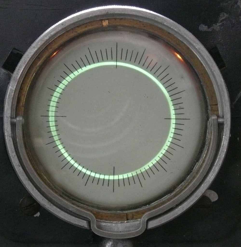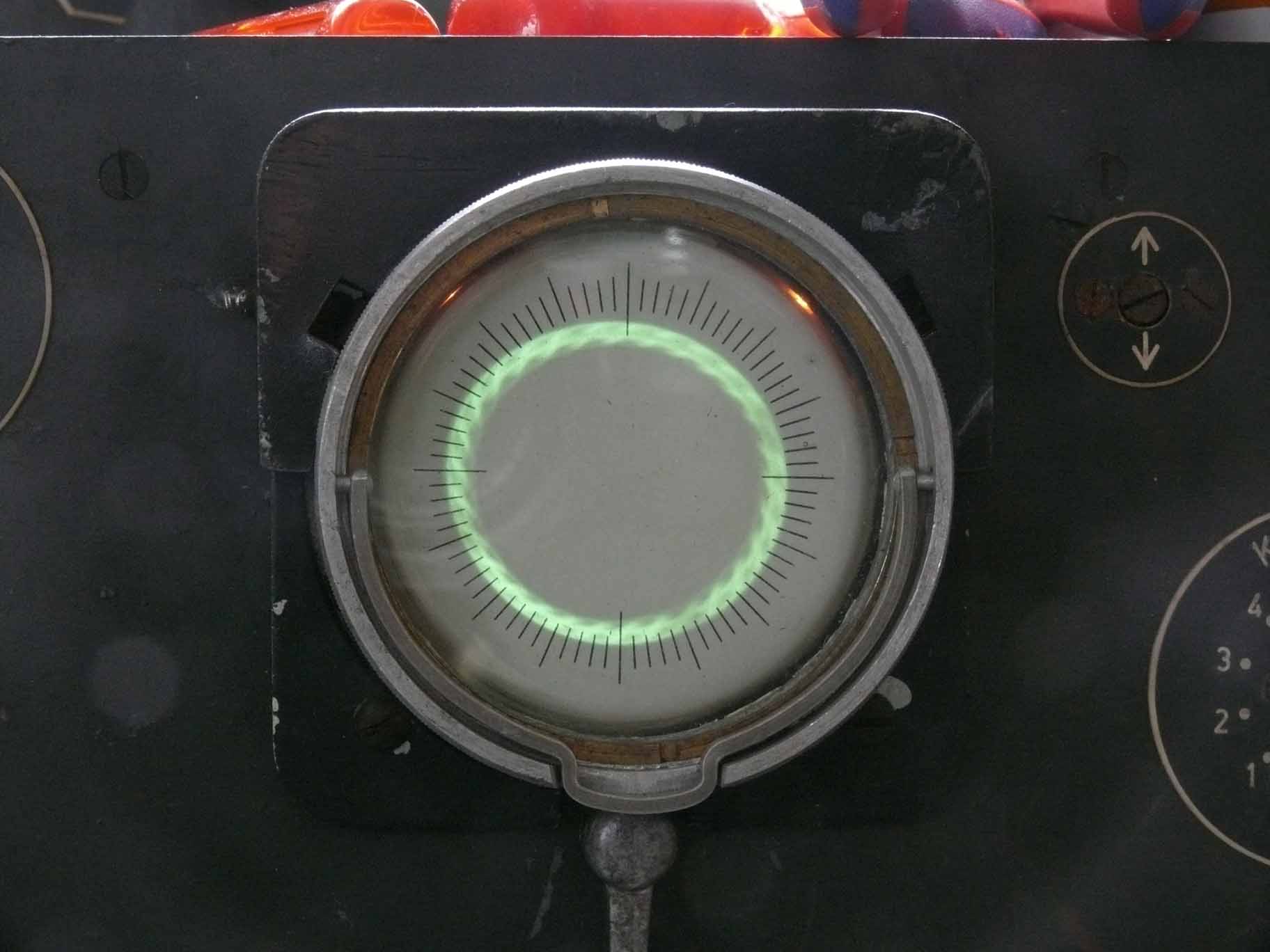Günter Hütter was so kind to provide a LB2 with integrated Al. mounting. Please notice the two small lamps on either side of the LB2 mounting. What I never have realised before, is that the two slits in the Al. mounting ring is providing a kind of scale illumination. I thought firstly, that it would necessitate an additional 'scale-disk' but apparently it illuminates the engraved black lines of the CRT screen