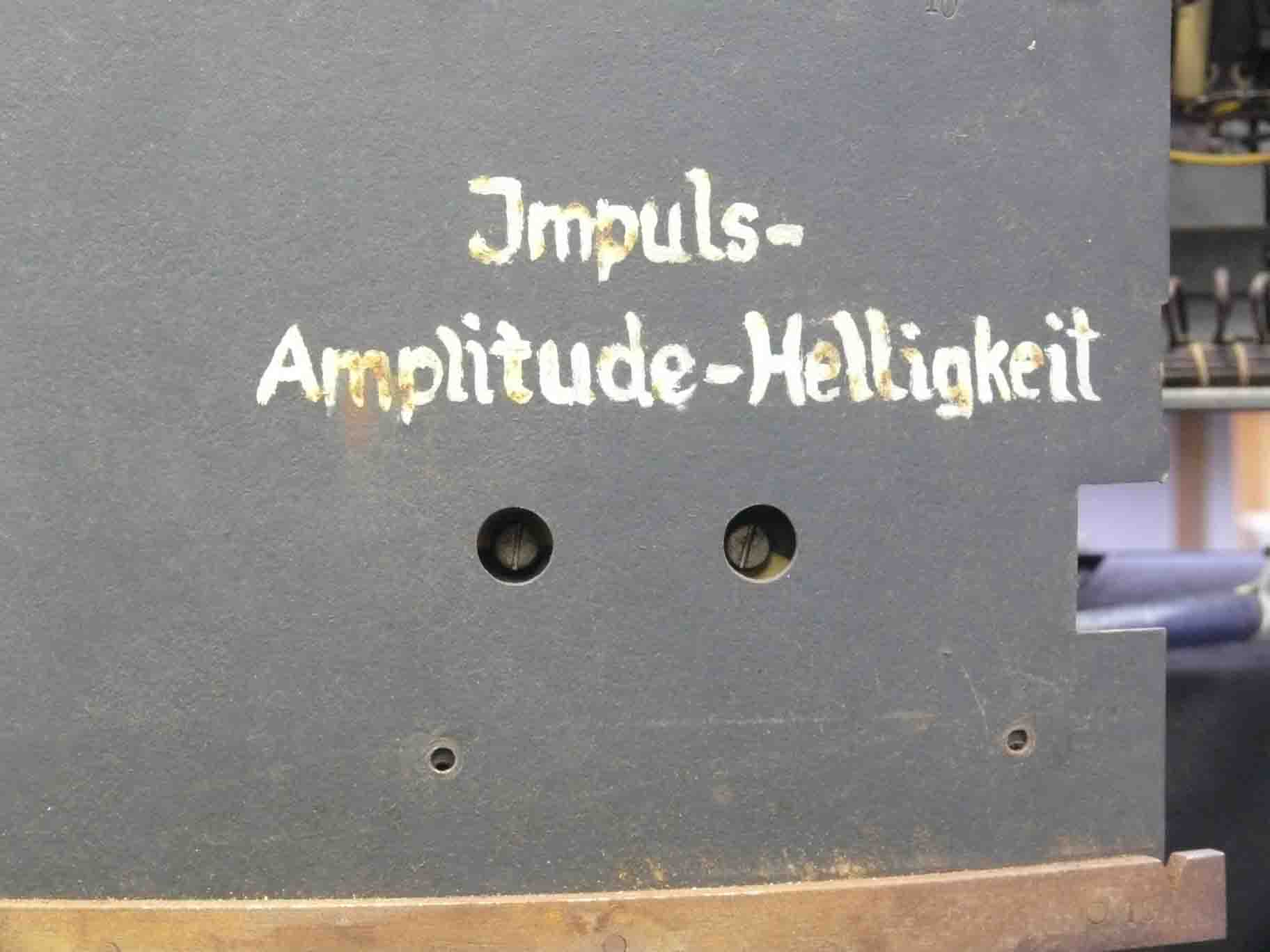 These facts, combined with closer investigation of the double beam CRT deflection stage, is telling us that what was assumed previously is not correct. The double beam scope has to have a normal A-scope like presentation. Thus, acting around a horizontally deflected line. That we thought it was differently, is caused by the circumstance that next to it is a control called "circle diameter" (Kreisdurchmesser). It was found, that this control directly interacts with the LB2 deflection amplitude.