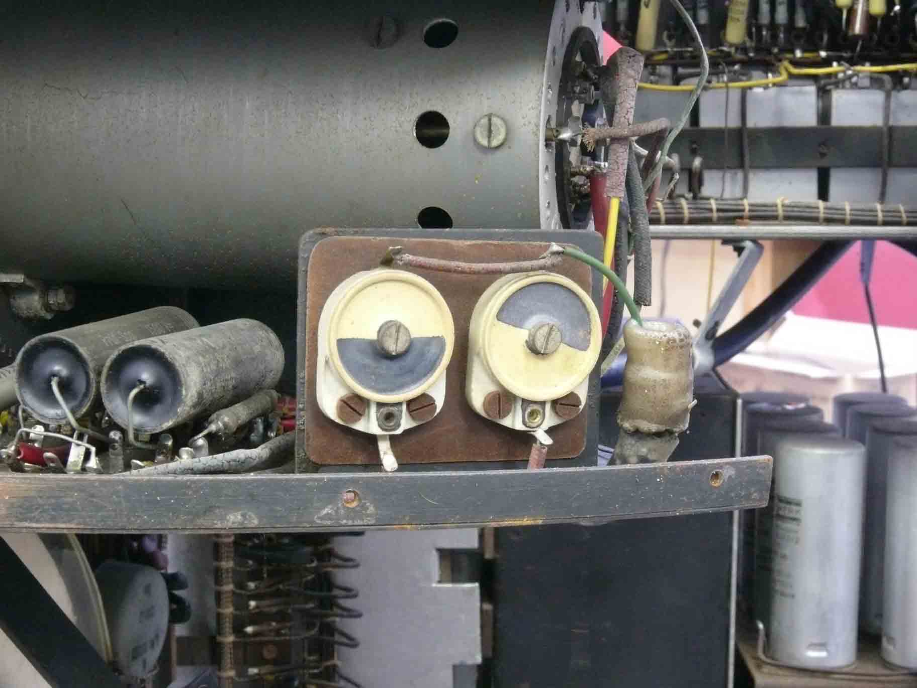 Viewing on the left valve sockets for Rö 20 and Rö 21. On the right in the background is valve socket 19 for the high tension rectifier (I guessing type RFG 5)