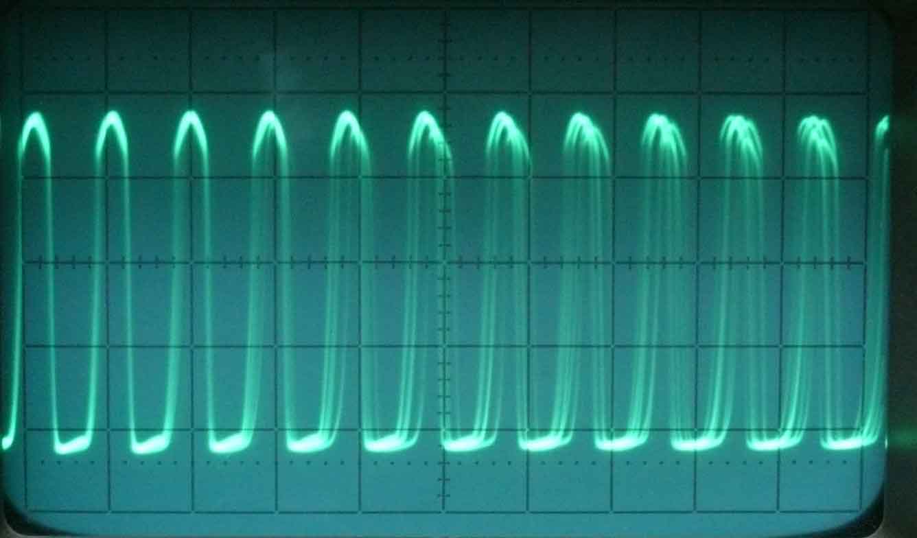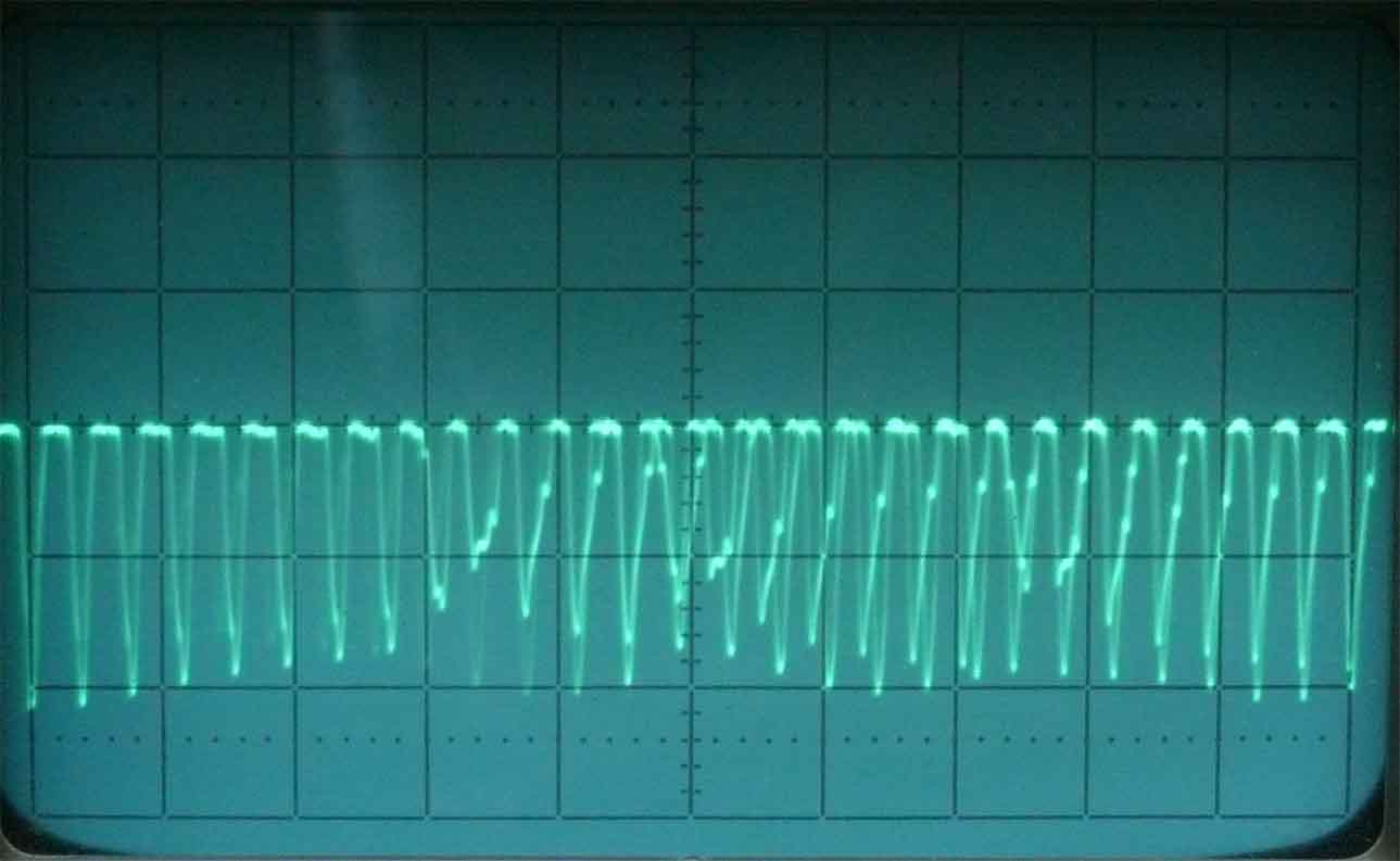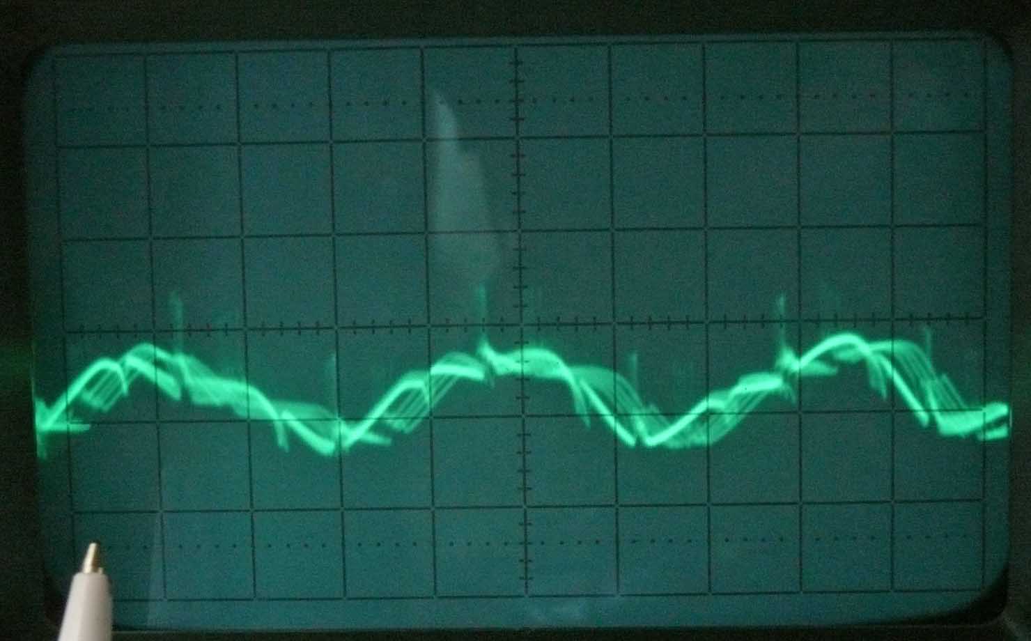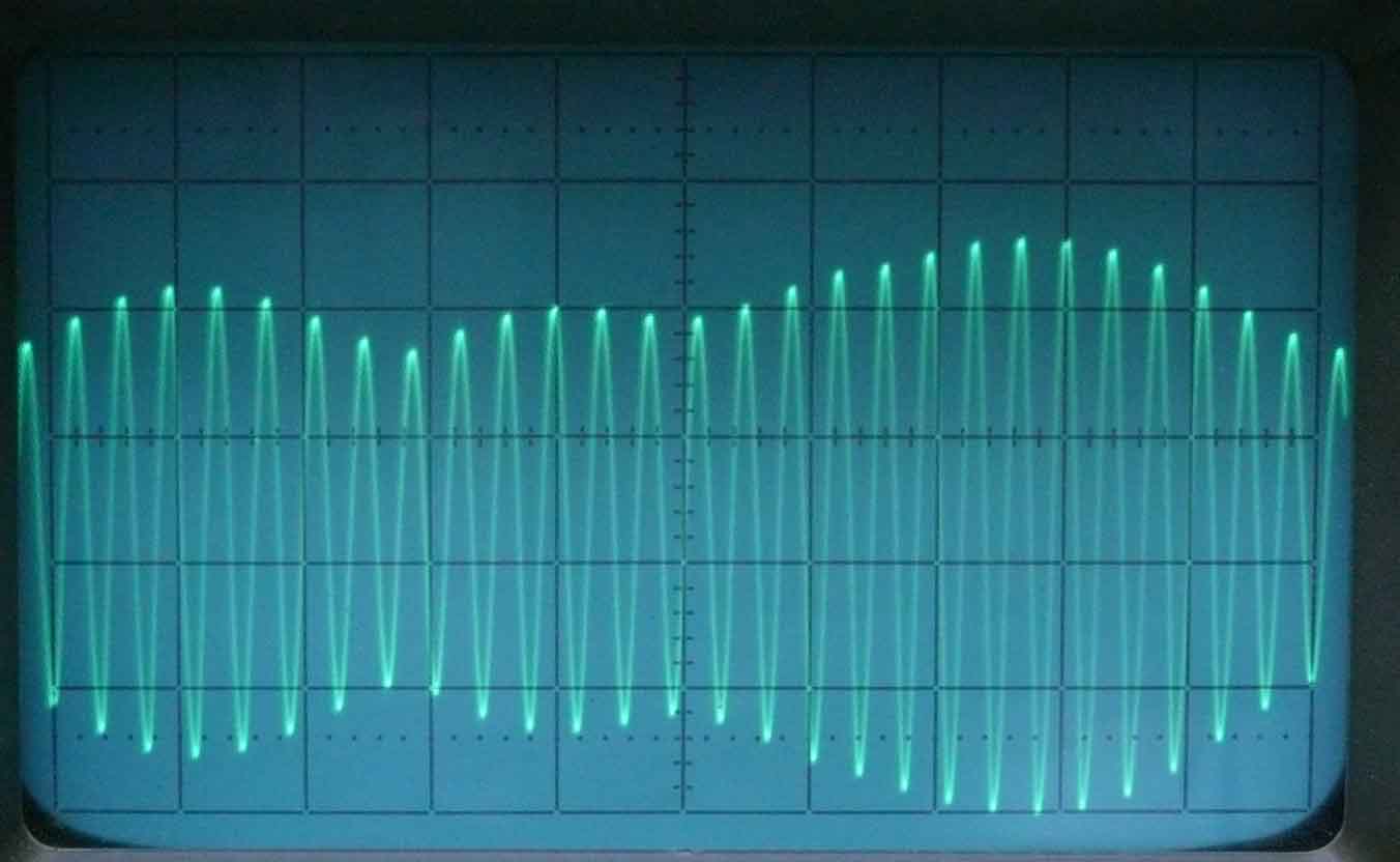 That the trace is a bit blurry is caused also by the fact that a quartz (channel) signal is interacting with the about 970 Hz signal.
