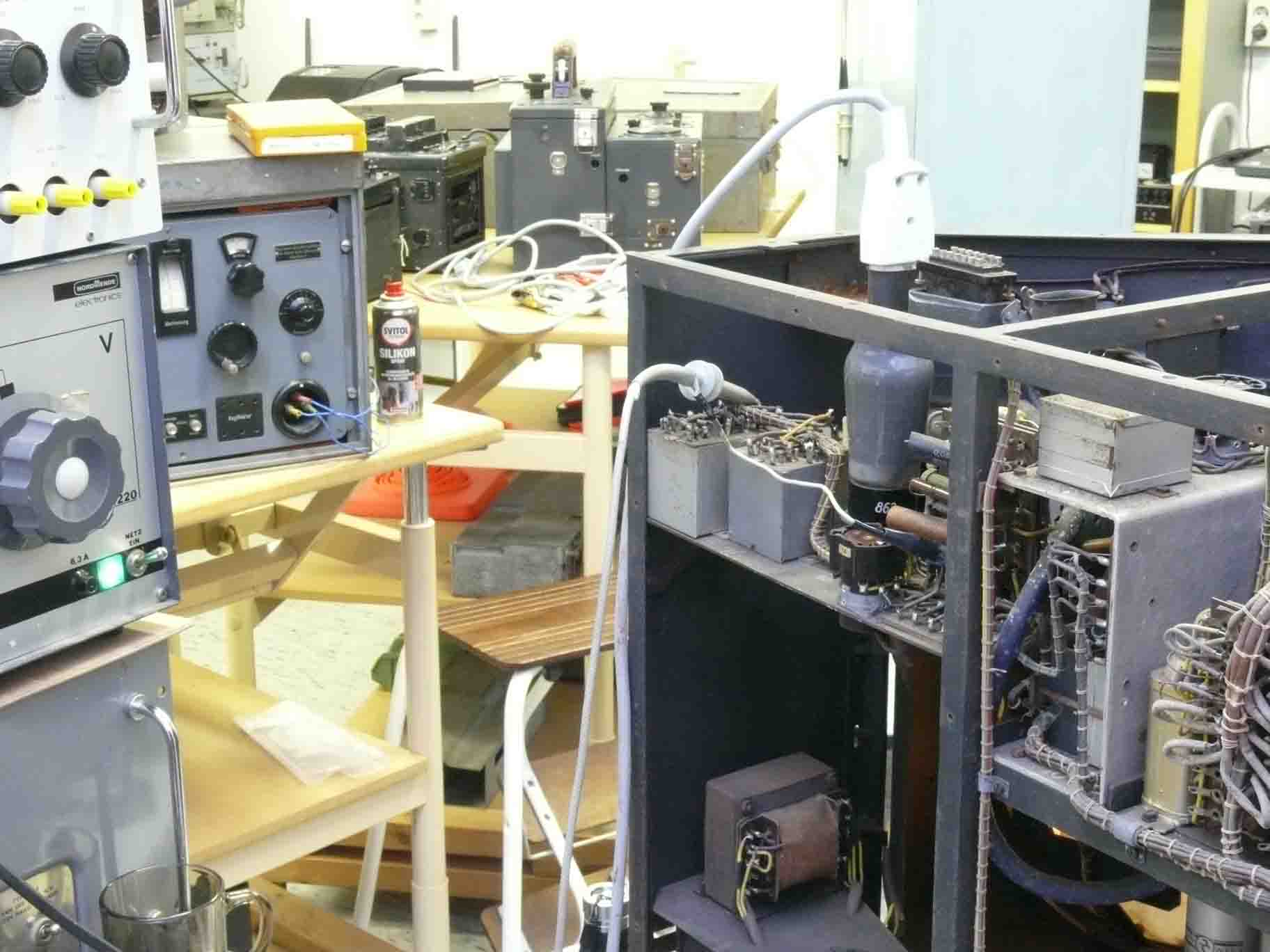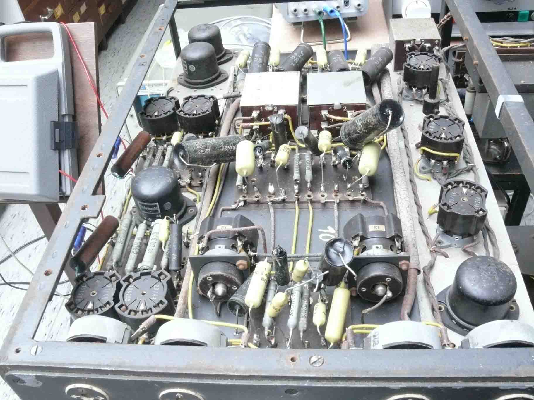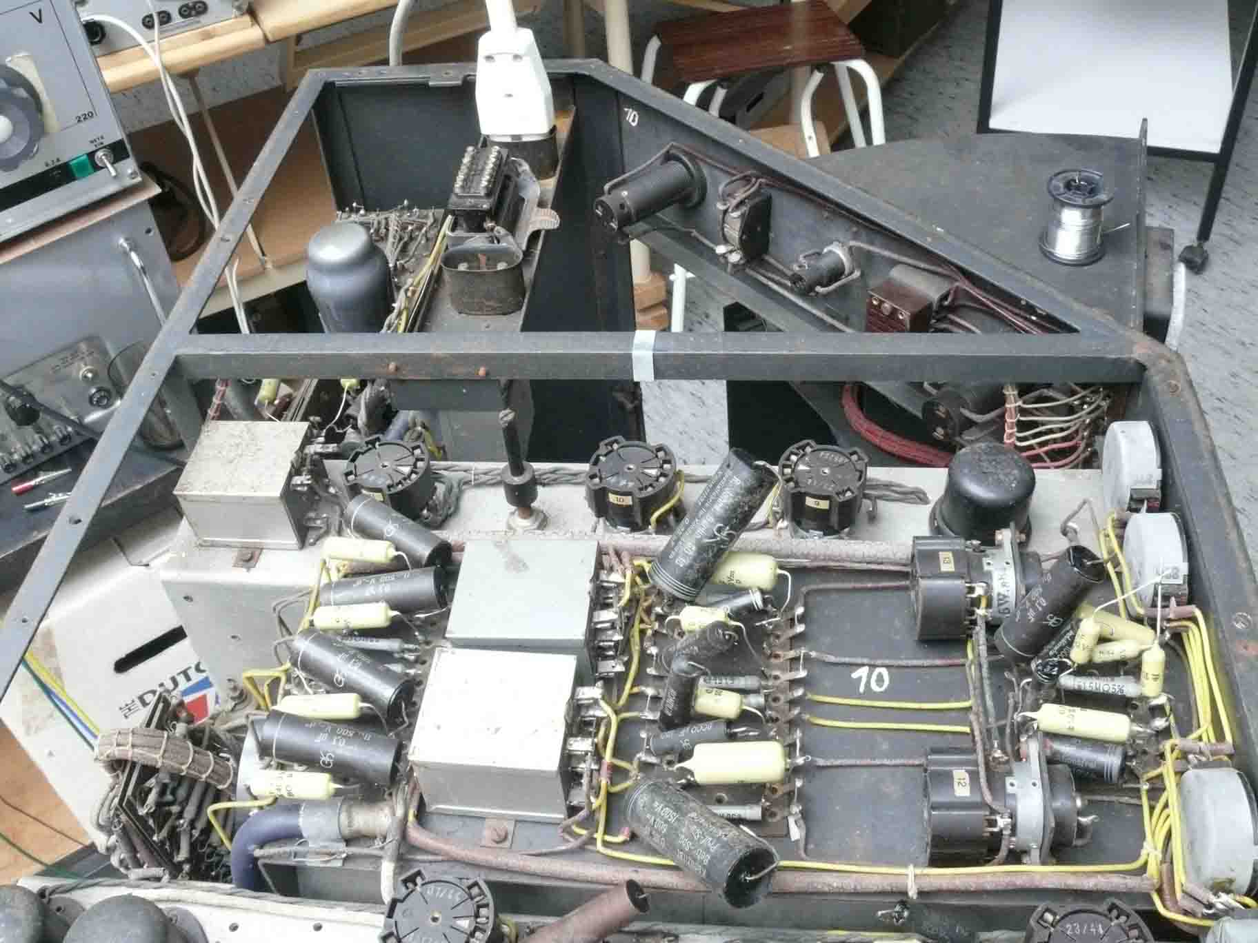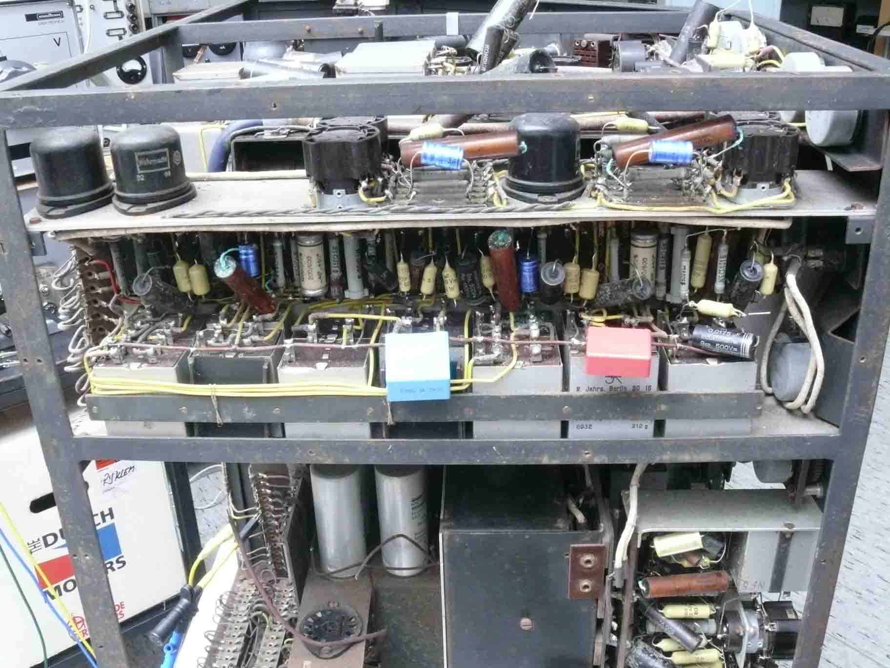 The metal cylinder is the housing of the magnetically deflected LB2 CRT. Until now, all Siemens & Halske resistors proved being still within their tolerance value. Remarkable after > 66 years.