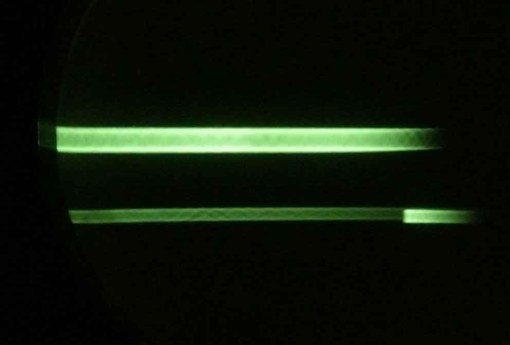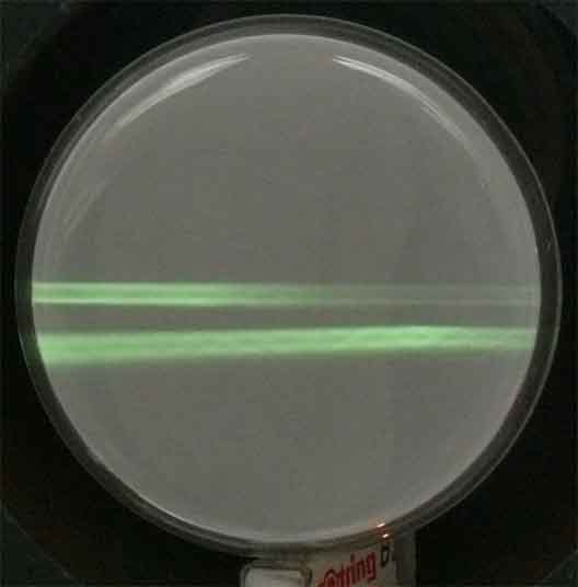 That the painted trace is a bit blurry is originating from the camera exposure time versus the (LB2) time base frequency.