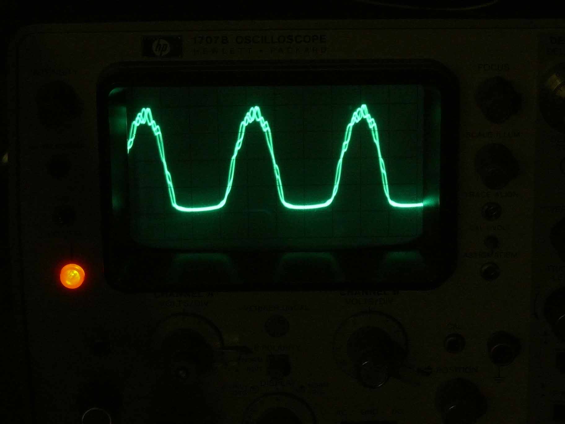 It was also noticed, that the formerly measured saw-tooth deflection signal at the anode of the EL11 has changed into a quite good sinusoidal like signal. Which is necessary for a linear circular time base