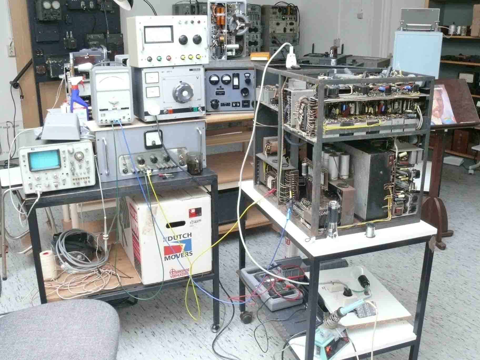 We have now inserted an EL 11, which I guessed is the only option regarding the valve connections and the physical space provided. My estimation was correct. And at the anode of the EL11 we saw a saw-tooth of 200 pp at the oscilloscope. I sadly forgot to take a screen shot. But the stage works!