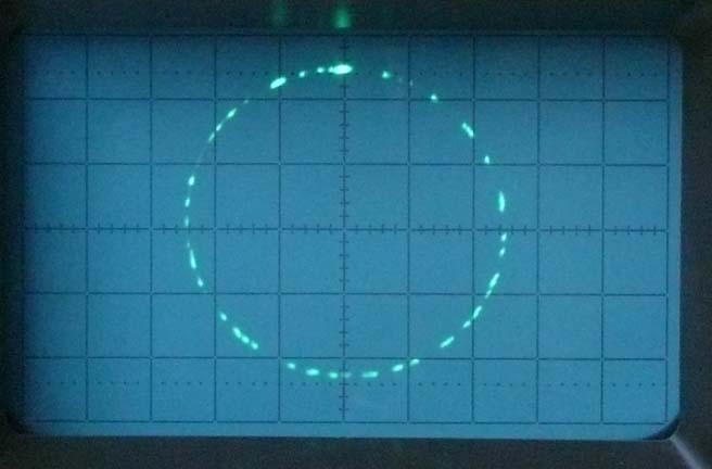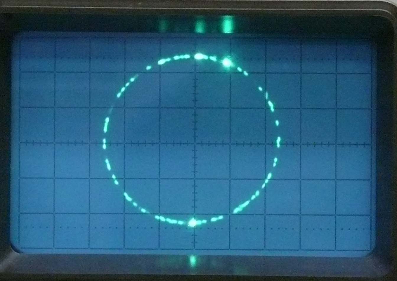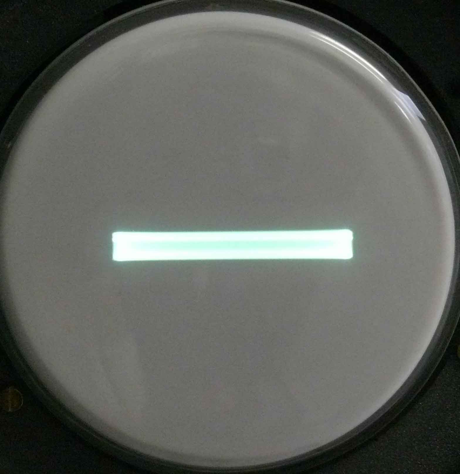 This fuzzy screen shot taken just after the feedback control was turned too much clockwise (> than position number 6), causing dangerous overloading of the quartz vibrator until it strikes!