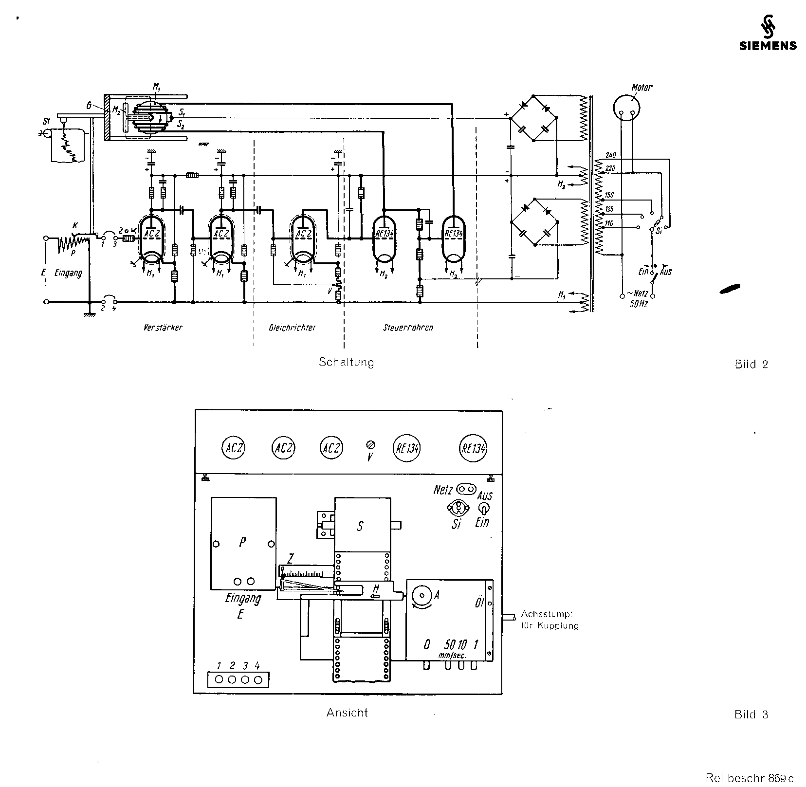 The two coils driven by the two RE134 valves is in fact controlling a fork-system. There rotates a disk between the two legs having a constant rotation velocity. When one of the two coils is having a different current flowing the fork-arrangement is being forced to touch the constantly running drum. Resulting in a movement of the fork in such a direction that it will search for balance. Balance is taking place (occurring) when the system potentiometer is having its appropriate position. Is the signal strength too low, the potentiometer is being forced to move towards a higher signal gain. The inverse is happening when the signal level is too high. Hence, the movement of the potentiometer setting is an indication of signal strength. The clever idea was, that the potentiometer module could be changed, as each module responds in a different way. Say, for instance, in a logarithmic or with an 'e' thus a 'ln' response.